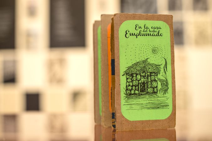 Para terminar, sería oportuno mencionar las singularidades de la presentación del volumen. Como pocas veces se ha visto, “En la casa del techo emplumado” comparte simultáneamente las propiedades de un libro cartonero y un libro objeto. Por ejemplo, el material de sus tapas proviene de cartón reciclado al que se le agregado una bella ilustración de Carla Ccave. Y cuando uno se dispone a leer el texto, no observa la típica encuadernación: las hojas se despliegan en perfecta armonía y a la manera de un acordeón. Esta característica no solo encarna un gesto creativo de mucho interés sino también nos invita a iniciar una lectura diferente.