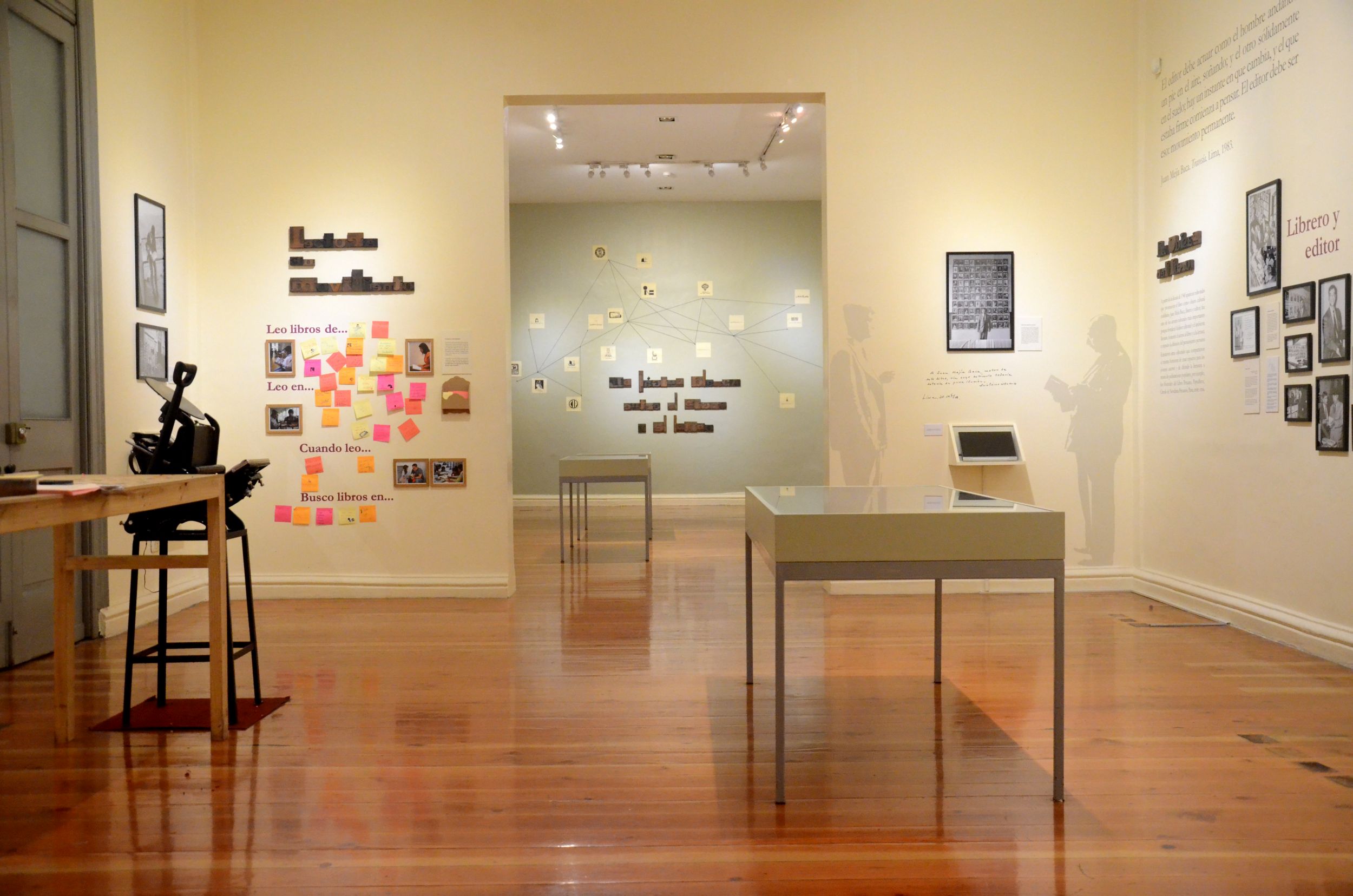 La muestra presenta el mundo del libro como una constelación dinámica, donde las editoriales e imprentas trabajan conjuntamente para promover la lectura. De este modo, recorre el trabajo de distintas editoriales: Minerva, de Julio César y José Carlos Mariátegui; la Librería Editorial Juan Mejía Baca; La Rama Florida del poeta Javier Sologuren; Industrial Gráfica de Francisco Campodónico, Patronato del Libro Peruano y Populibros Peruanos de Manuel Scorza, entre otros.