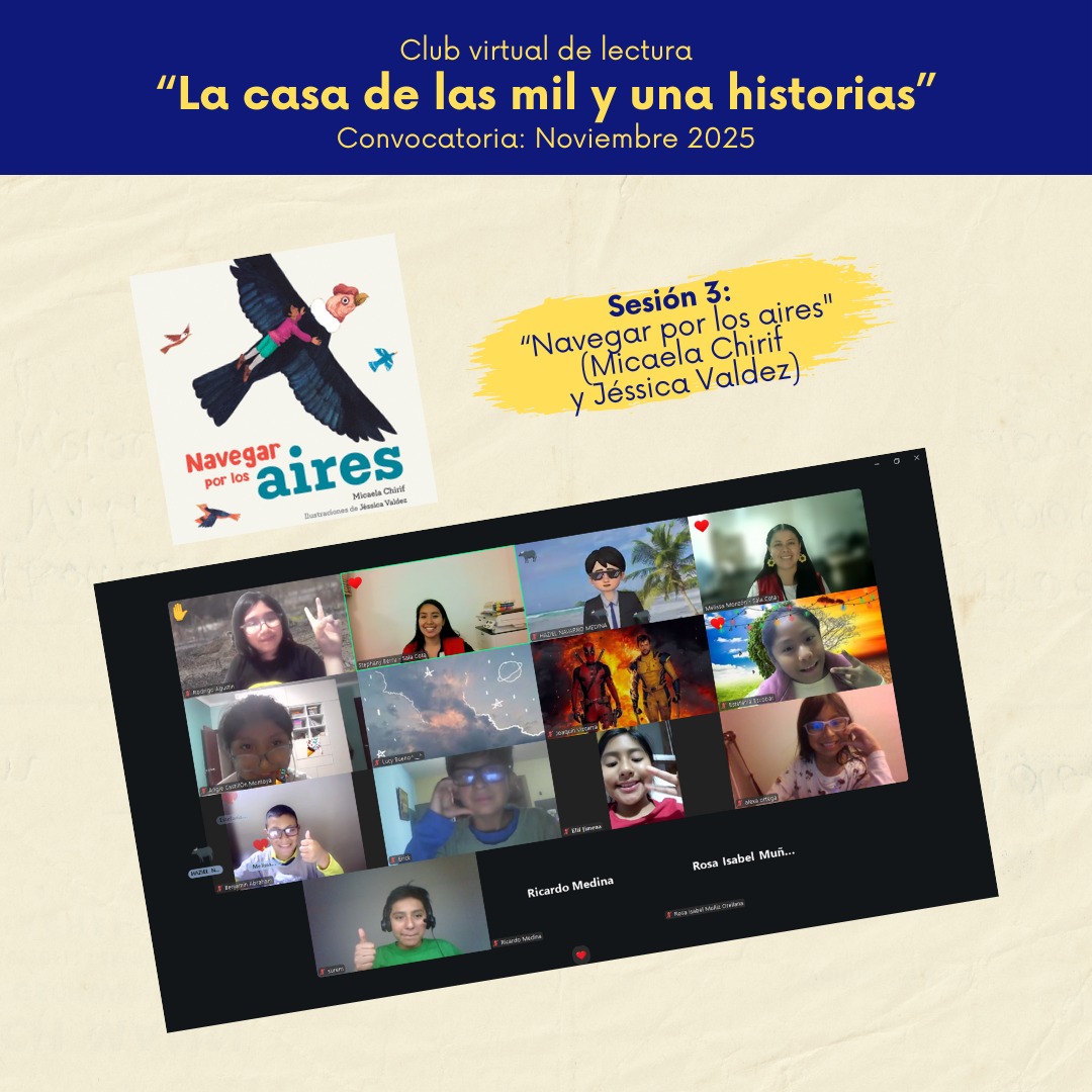 Es un club virtual de lectura dirigido a niñas y niños de 9 a 11 años, concebido como un espacio de encuentro, diálogo y construcción colectiva de sentidos a partir de la lectura. A través de sesiones sincrónicas, los participantes leen en voz alta, conversan y realizan dinámicas sobre el libro elegido para cada sesión. El club se organiza en ciclos temáticos mensuales y aplica herramientas de mediación lectora desde el enfoque “Dime”.  Cada ciclo contempla tres sesiones por mes, sumando un total de 12 sesiones virtuales al año.